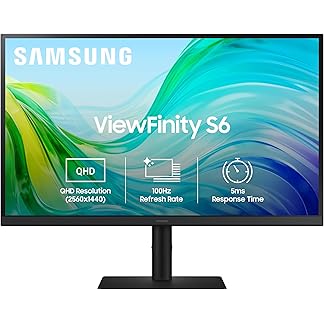 Samsung 27″ (68.5cm) ViewFinity S6 IPS 2K Monitor|QHD 2560 X 1440|100 Hz|5ms|300nits|SRGB 99%|Ports-HDMIX2,DP,Headphone|Height-Tilt-Pivot Adjustable Stand|LS27F610EAWXXL|Black