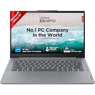 Lenovo IdeaPad Slim 3, Intel Core i5-12450H, 12th Gen, 16GB RAM, 512GB SSD, FHD, 14″/35.5cm, Windows 11, MS Office Home 2024, Grey, 1.37Kg, 83EQ0072IN, 3 mon. Game Pass Laptop