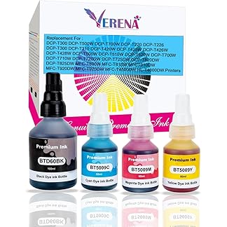 Verena BTD60 BT5000 Refill Ink Compatible for Brother DCP-T300 T310W T500W T520W T220 T700W T420W T425W T426W T428W T720DW T725DW T820DW T810W T910DW T920DW T925DW Printers (Black cyan Magenta Yellow)