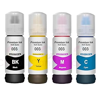 CANOFF 003 Ink for Epson L3110, L3150, L3250, L3252 L3115, L3116, L3101, L3210, L3215, L3216, L3151, L3152, L3156, L5190 Printer – Compatible Ink Bottle for Epson 003 (Black, Cyan, Magenta, Yellow)