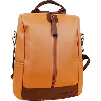 Amazon Basics Women’s Convertible PU Leather Backpack | Water-Resistant | Fits 13″ Laptop | Anti-Theft Pockets | Multi-Style: Backpack, Crossbody, Shoulder, Tote | College, Travel, & Daily Use (Brown)