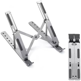 RT Laptop Stand 7-Level Angles Adjustable Riser Holder for Home or Office Foldable Laptop Stand Plastic Aluminum Alloy Metal Base Notebook Computer Holder Height Adjustment
