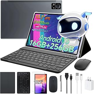 Android 15 Tablet 10 Inch with Keyboard,16GB+256GB Tablets, 8000mAh Battery, Octa-core CPU, Widevine L1,2.4GHz/ WiFi 5 & Bluetooth 5.0, 5/13MP Cameras Bundle with Case, Mouse & Stylus M7 (Grey)