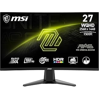 MSI MAG 27CQ6F 27 Inch 2K WQHD Curved Gaming Monitor – 1500R 2560 x 1440 Rapid VA Panel, 180 Hz / 0.5ms (GtG, Min.), Adaptive-Sync – DP 1.4a, HDMI 2.0b CEC