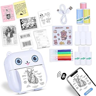 Uranus™ Mini & Portable Bluetooth Inkfree Thermal Printer for Android & iOS, Black & White Thermal Printer with 1 Free roll [Random Color]