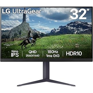 LG 32GS85Q 32 Inch QHD (2560×1440) Nano IPS Ultragear Gaming Monitor, 180Hz, 1ms, NVIDIA G-SYNC Compatible, AMD FreeSync, HDR10, Tilt/Height/Pivot Stand, HDMI X 2, Display Port, HP Out, Black