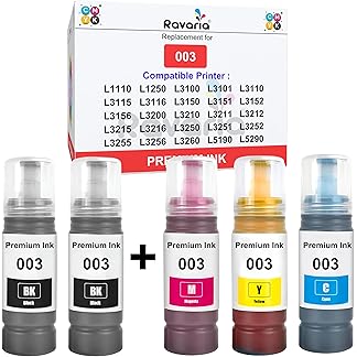 Ravaria 003 Compatible Ink for Epson Printer L1110 L3100 L3101 L3110 L3115 L3116 L3150 L3151 L3152 L3156 L5190 (003 Ink Set + 1 Black Extra)