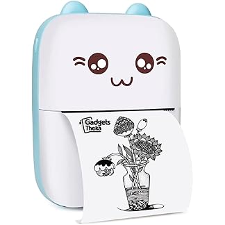 BT Instant Printing, Mini Bluetooth Thermal Printer, Inkfree Printer, Black & White Thermal Printer, Portable Photo/Sketch/Text/Label Printer for Android & iOS System with Long Battery Life (Blue)