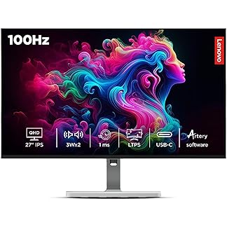 Lenovo L-Series 27 inch (68.5cm) QHD IPS Monitor| 100Hz, 1ms, FreeSync, 99% sRGB, 90% DCI-P3, 3Wx2 Speakers, 4xUSB-A, 1xUSB-C, 2X HDMI 2.1, Tilt, Swivel, Pivot Height Adjust Stand: Grey, L27h-4A