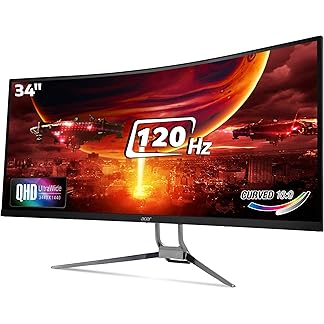 Acer ED343CUR J 34 Inch UWQHD (3440×1440) Pixels VA Panel 1000R Curved Backlight LED Monitor I 1 MS, 120Hz Refresh I HDR 10, Adobe RGB 90% I RGB Lighting I 2 x HDMI (2.0) 2 x DP (1.2) I Eye Care