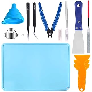 Serplex® Essential 3D Printer Tools Kit with Silicone Mat, Funnel & Resin Filter, Tweezer, Trimmer Pen, Scraper, for DIY, Comprehensive Model Cleaning & Finishing Set for SLA/DLP/LCD Printers