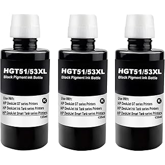 CANOFF GT53XL Refill Ink Bottle for USE in DESKJET 5810,5811,5820,5821 INKTANK Wireles 315,316,319,410,415 Smart Tank 500,510,515,750,790 Printers (135ml Per Ink Bottle) (Pack of 3 Bottle)