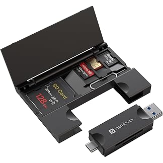 Portronics Mport 30 Plus Card Reader with Storage Case for microSD & SD Cards, Type-C & USB Dual Plugs, Carry Case for microSD, SD, SIM Cards and SIM Ejector Tool (Black)