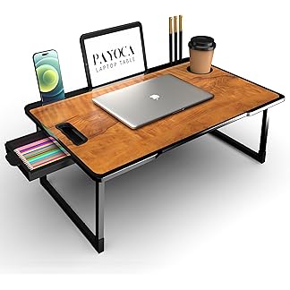 PAYOCA Wooden Mini Laptop Table for Bed, Study Table with Drawer, Tablet/Mobile Holder for Kids & Adults (B COTTED Wood)