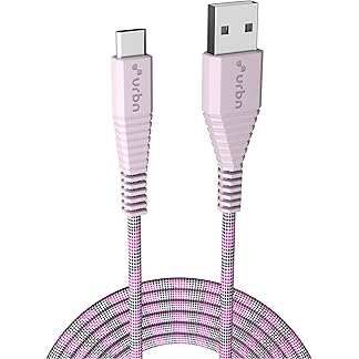 URBN USB Type-C 25w Ultra Fast Charging Cable – 5ft | Unbreakable Nylon Braided, Quick Charge (QC) Compatible | Charge & Data Transfer | Rugged C-Type Cable for All Devices – Designer Pink