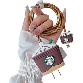 INEFABLE Charger Case Cover Protector with 3D Cute Pattern for iPhone Charger only 18W & 20W, Data Charging Cable Wire Saver Protective Cable Cover Full Protection – Set of 1 (Brown Starbuck)