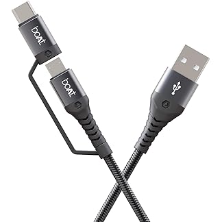 boAt Deuce USB 300 2 in 1 Type-C & Micro USB Stress Resistant, Sturdy Cable with 3A Fast Charging & 480mbps Data Transmission, 10000+ Bends Lifespan and Extended 1.5m Length(Mercurial Black)