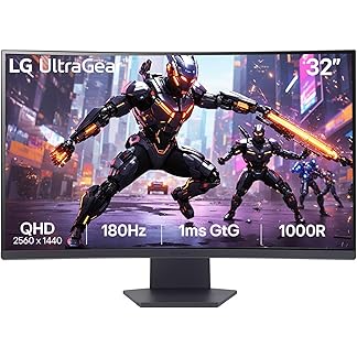 LG Ultragear™ 32GS60QC (32 inch) QHD 1000R Curved Gaming Monitor (2560 x 1440) with 180Hz, 1ms, AMD FreeSync™, HDR10, VESA Certified, HDMIx2 DisplayPort, 3-Side virtually Borderless – Black