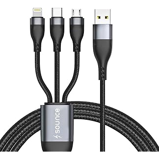 Sounce 100W/6A Speed Fast Charging Usb 3.0 Cable 4 Ft/1.2M To 3-In-1 Long Charging Cord With Type C + Micro Usb + Lightning Connector 480 Mbps Data Transfer For Laptop,Tablets,Smartphones&More,Black