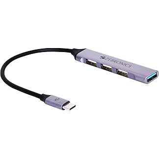 Zebronics TA200U Type C to USB 3.0 4 port hub with Hi speed data transfer, Aluminum + ABS body, 15cm cable, sleek design and Plug Play usage
