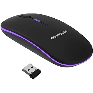 ZEBRONICS Blanc Slim Wireless Mouse with Rechargeable Battery, BT + 2.4GHz, 4 Buttons, 800/1200/1600 DPI, Silent Operation, Multicolor LED Lights