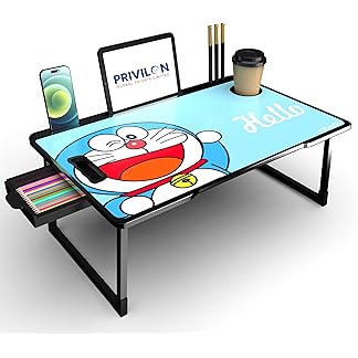 PRIVILON GLOBAL Private Limited Foldable Wooden Mini Laptop Table for Bed, Study Table with Drawer, Tablet/Mobile Holder for Kids & Adults->> (DORAMON COTTED)