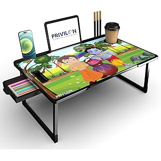 PRIVILON GLOBAL Private Limited Foldable Wooden Mini Laptop Table for Bed, Study Table with Drawer, Tablet/Mobile Holder for Kids & Adults->> (Unicon COTTED)