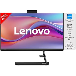 Lenovo IdeaCentre AIO 3 Intel Celeron 7305 22″ FHD IPS 3-Side Edgeless All-in-One Desktop with Alexa Built-in (8GB/512GB SSD/Win11/HD 720p Camera/USB Wired Keyboard & Mouse), F0GG0061IN