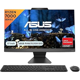 ASUS AiO M3 Series, 27″ (68.58 cms) FHD, AMD Ryzen 5 7520U, All-in-One Desktop (16GB/512GB SSD/Windows 11/Office 2021/with Wireless Keyboard & Mouse/Black/8.90 Kg), M3702WFA-BA002WS
