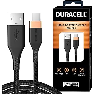 Duracell Usb-A To Type C, 65W Braided Sync&Fast Charging USB Cable, 3.9 Feet(1.2M), Qc 2.0/3.0 Ultra Fast Charging, For Samsung, Mi, Realme, Oppo, One Plus, Seamless Data Transmission, Series 1,Black