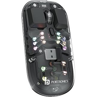 Portronics Toad 5 Transparent Bluetooth Mouse with 2.4 GHz & BT 5.3 Dual Wireless, Rechargeable, RGB Lights, Connect 3 Devices, Sleek Design for Laptop, Smartphone, Tablet (Black)
