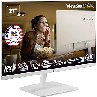 ViewSonic (From USA)68.58 Cm (27″) White Monitor Full HD IPS |100Hz |1ms| 2X2W Speakers | EyeProtech+ | Win. & mac OS tested | VESA Compatable |Tilt-5º / 20º | sRGB 109% | HDMI1.4 | VGA | VA2732-MH-W