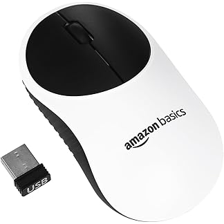 amazon basics Wireless Mouse | 2.4 Ghz with USB Nano Receiver | 1000 DPI Optical Tracking | Compatible with PC & Laptop (White & Black)