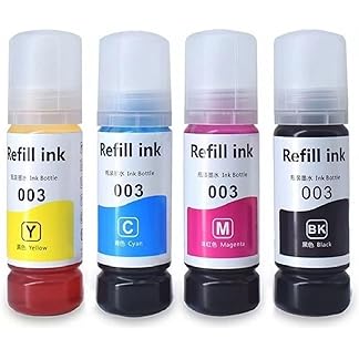 Refill Ink Bottle 003 for Epson Printers L3110, L3150, L4150, L4160, L5190, L6160, L6170 Pack of 4 InkBottle (003 Set)