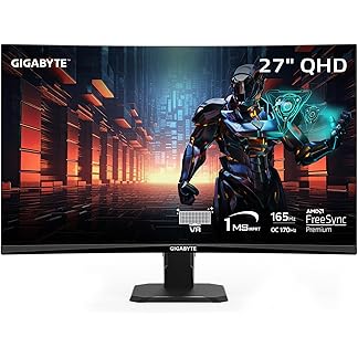 Gigabyte GS27QC 27″ 165Hz 1440P Curved Gaming Monitor, 2560 x 1440 VA 1500R Display, 1ms (MPRT) Response Time, HDR Ready, FreeSync Premium, 1x Display Port 1.4, 2X HDMI 2.0
