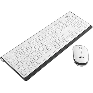 Acer Wireless Keyboard & Mouse Combo with Attractive Durable Design, 2.4GHz Nano Receiver, 10m Range, Indian Rupee Key Code, 1600 DPI, 10M Keystrokes Life for Microsoft Windows and Mac OS(White/Grey)
