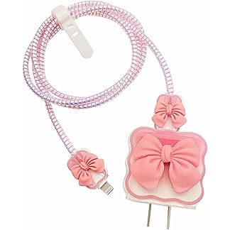 INEFABLE 25W Charger Protector for Samsung, Protective Silicone Case Cover 25W Power Adapter Charger with Wire Saver – Pack of 1 (Pink Bow)
