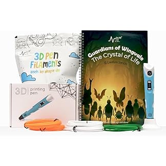 NFIL3D Pen Kit for Kids | 3D Pen Starter Kit | Republic Day Special Kit Includes 1Pcs Cable,1Pcs Stand & 3D Pen 14 pcs Pla Filament (3pcs Multicolor & 4Orange,4Green,3White) with Stencil Book (Blue)