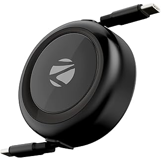 Zebronics Type C – Type C Retractable Cable, 60 Watts, Upto 480Mbps Data Sync, Fast Charging, 1 M, Compatible with iPhone 15 & 16 Series, iPad, MacBook, Samsung, Android (Wattz 60RCC1, Black)