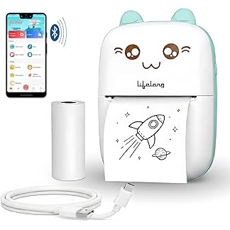 Lifelong Mini Thermal Printer | Portable & Inkless | Support Bluetooth | Wireless Mobile Printing for Android & iOS | Photo Printing | Black & White Sticker & Mini Pocket Printer for Kids (LLEMP09)