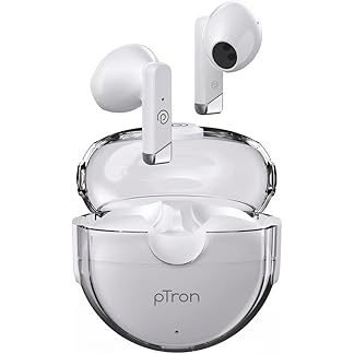 pTron Bassbuds Fute TWS Earbuds with Mic, Bluetooth V5.1 Wireless Headphones, 13mm Driver, 25Hrs Playtime, Snug-Fit in-Ear Buds, Touch Control, Voice Assistant & Type C Fast Charging (Pearl White)
