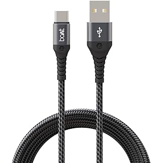 boAt Type C A550 Type-C Stress Resistant,Tangle-Free,Sturdy Cable with 3A Rapid Charging & 480mbps Data Transmission,10000+ Bends Lifespan & Extended 1.5m Length(Mercurial Black)