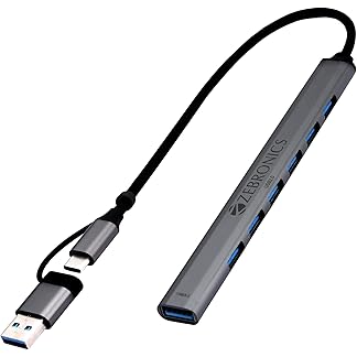 ZEBRONICS 700HB Type C Multiport Adapter with 7 USB Ports, Aluminum Body, Lightweight Design, USB 3.0, Compatible with Laptop | Smartphone | Tablet | PC
