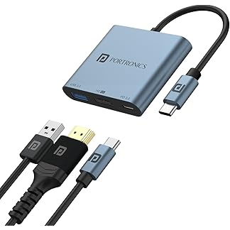 Portronics C-Konnect Plus Type-C to HDMI Adapter (3-in-1), Multiport USB-C Hub with 4K / 30Hz HDMI, USB 3.0 @ 5Gbps, 100 W PD Charging for Laptop, MacBook, PC (Grey)