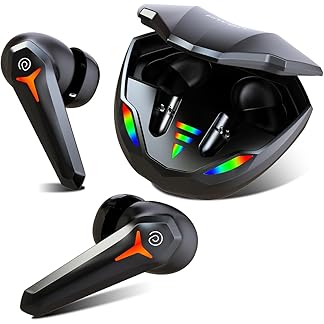 pTron Bassbuds Razer TWS Earbuds, 40ms Gaming Low Latency, TruTalk AI-ENC Calls, Deep Bass, 45H Playtime, HD Mic, In-Ear Bluetooth 5.3 Headphones, Type-C Fast Charge & IPX5 Water Resistant (Jet Black)