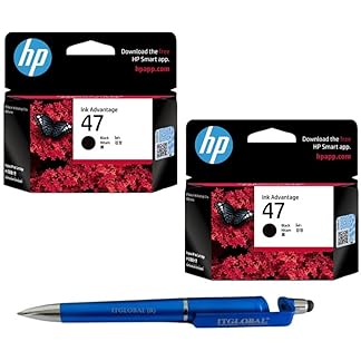 HP 47 Ink Cartridge (Black) Twin (Set of 2) with 3in1 Multi-Function Mobile Phone Stand, Stylus Pen, Anti-Metal Texture Rotating Ballpoint Pen (Very Colors)