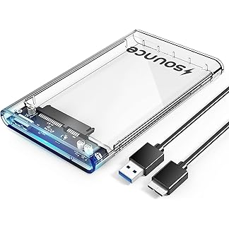 Sounce 2.5″ SSD Enclosure Case, USB 3.0 to SATA Tool-Free External Hard Disk Case with Fast Transfer Speed Up to 5 Gbps & Up to 4TB Storage Capacity Compatible with 2.5 SSD / HDD