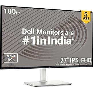 Dell-S2725HS-Silver 68.58cm (27″) FHD Monitor 1920×1080 at100Hz, Built-in 5w Dual Speaker, Response Time: 4ms(Extreme), 99% sRGB(typical), Ficker Free, Brightness: 300 cd/m2 (typical), Ports: 2X HDMI