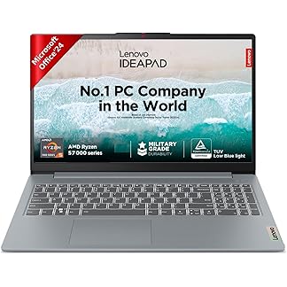 Lenovo Ideapad Slim 3 AMD Ryzen 5 7520U 15.6″ (39.6cm) FHD Thin and Light Laptop (16GB/512GB SSD/Windows 11/Microsoft 365 Basic + Office Home 2024/Backlit Keyboard/Grey/1.6Kg), 82XQ00XDIN