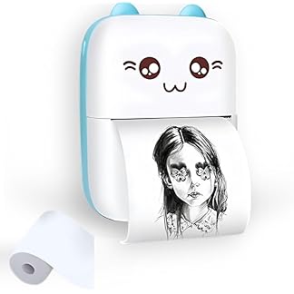 BROLLY & BEAR Mini Portable Thermal Printer – Bluetooth Wireless Photo & Label Printer for Kids with 1 Paper Roll – 57mm Black & White Pocket Printer for Mobile, School, Stickers (Assorted)